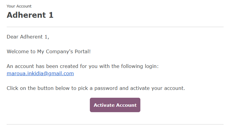 Un email vous sera envoyé pour définir votre mot de passe et activer votre compte.